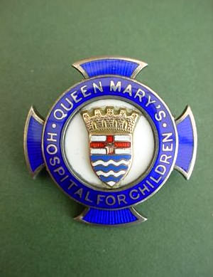 ..... Short Description ...... The Queen Mary's Hospital for Children, London, Hospital badge was awarded to nurses on completion of training. It is (shape) in shape and made from (materials), with the hospital name around the circumference. The badge weighs (weight) grams and has a (rear pin/button hole) fixing. Picture: The central design is of (description). Badges (were/were not) named and dated with the name of the recipient on the reverse. ..... |