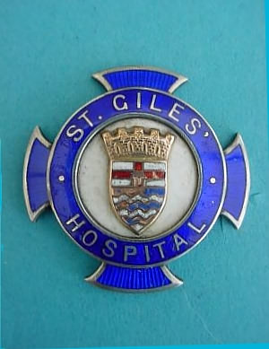 ..... Short Description ...... The St Giles' Hospital Camden Hospital badge was awarded to nurses on completion of training. It is (shape) in shape and made from (materials), with the hospital name around the circumference. The badge weighs (weight) grams and has a (rear pin/button hole) fixing. Picture: The central design is of (description). Badges (were/were not) named and dated with the name of the recipient on the reverse. ..... |