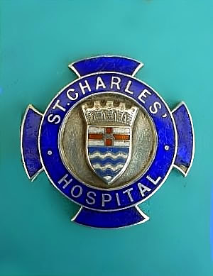 ..... Short Description ...... The St Charles' Hospital London Hospital badge was awarded to nurses on completion of training. It is (shape) in shape and made from (materials), with the hospital name around the circumference. The badge weighs (weight) grams and has a (rear pin/button hole) fixing. Picture: The central design is of (description). Badges (were/were not) named and dated with the name of the recipient on the reverse. ..... |
