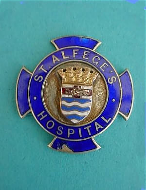 ..... Short Description ...... The St Alfege's Hospital Greenwich Hospital badge was awarded to nurses on completion of training. It is (shape) in shape and made from (materials), with the hospital name around the circumference. The badge weighs (weight) grams and has a (rear pin/button hole) fixing. Picture: The central design is of (description). Badges (were/were not) named and dated with the name of the recipient on the reverse. ..... |