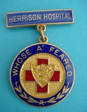 ..... Short Description ...... The Herrison Hospital Charlton-Down, Hospital badge was awarded to nurses on completion of training. It is (shape) in shape and made from (materials), with the hospital name around the circumference. The badge weighs (weight) grams and has a (rear pin/button hole) fixing. Picture: The central design is of (description). Badges (were/were not) named and dated with the name of the recipient on the reverse. ..... |