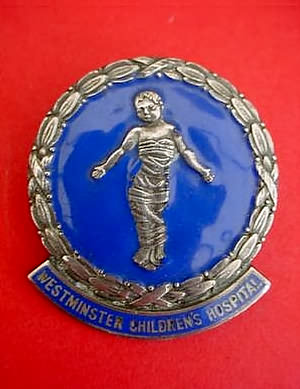 ..... Short Description ...... The Westminster Children's Hospital, Chelsea, Hospital badge was awarded to nurses on completion of training. It is (shape) in shape and made from (materials), with the hospital name around the circumference. The badge weighs (weight) grams and has a (rear pin/button hole) fixing. Picture: The central design is of (description). Badges (were/were not) named and dated with the name of the recipient on the reverse. ..... |