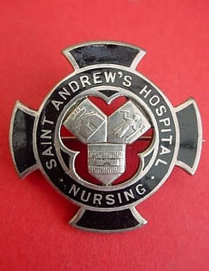 ..... Short Description ...... The St Andrew's Hospital Northampton Hospital badge was awarded to nurses on completion of training. It is (shape) in shape and made from (materials), with the hospital name around the circumference. The badge weighs (weight) grams and has a (rear pin/button hole) fixing. Picture: The central design is of (description). Badges (were/were not) named and dated with the name of the recipient on the reverse. ..... |