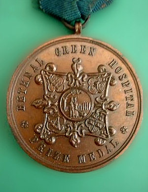 ..... Short Description ...... The Bethnall Green Hospital Prize Medal, London, Hospital badge was awarded to nurses on completion of training. It is (shape) in shape and made from (materials), with the hospital name around the circumference. The badge weighs (weight) grams and has a (rear pin/button hole) fixing. Picture: The central design is of (description). Badges (were/were not) named and dated with the name of the recipient on the reverse. ..... |