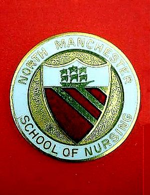 ..... Short Description ...... The North Manchester School of Nursing, Crumpsall, Hospital badge was awarded to nurses on completion of training. It is (shape) in shape and made from (materials), with the hospital name around the circumference. The badge weighs (weight) grams and has a (rear pin/button hole) fixing. Picture: The central design is of (description). Badges (were/were not) named and dated with the name of the recipient on the reverse. ..... |
