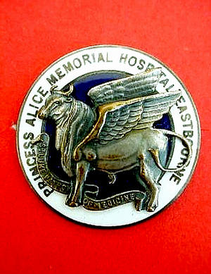 ..... Short Description ...... The Princess Alice Memorial Hospital Eastbourne Hospital badge was awarded to nurses on completion of training. It is (shape) in shape and made from (materials), with the hospital name around the circumference. The badge weighs (weight) grams and has a (rear pin/button hole) fixing. Picture: The central design is of (description). Badges (were/were not) named and dated with the name of the recipient on the reverse. ..... |