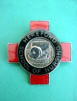 ..... Short Description ...... The Hereford School of Nursing Hospital badge was awarded to nurses on completion of training. It is (shape) in shape and made from (materials), with the hospital name around the circumference. The badge weighs (weight) grams and has a (rear pin/button hole) fixing. Picture: The central design is of (description). Badges (were/were not) named and dated with the name of the recipient on the reverse. ..... |
