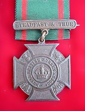 ..... Short Description ...... The Royal British Nurses Association London, Hospital badge was awarded to nurses on completion of training. It is (shape) in shape and made from (materials), with the hospital name around the circumference. The badge weighs (weight) grams and has a (rear pin/button hole) fixing. Picture: The central design is of (description). Badges (were/were not) named and dated with the name of the recipient on the reverse. ..... |
