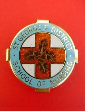 ..... Short Description ...... The St George's District School of Nursing, London, Hospital badge was awarded to nurses on completion of training. It is (shape) in shape and made from (materials), with the hospital name around the circumference. The badge weighs (weight) grams and has a (rear pin/button hole) fixing. Picture: The central design is of (description). Badges (were/were not) named and dated with the name of the recipient on the reverse. ..... |