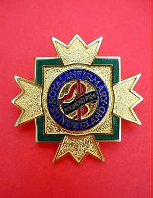 ..... Short Description ...... The Sunderland Royal Infirmary Hospital badge was awarded to nurses on completion of training. It is (shape) in shape and made from (materials), with the hospital name around the circumference. The badge weighs (weight) grams and has a (rear pin/button hole) fixing. Picture: The central design is of (description). Badges (were/were not) named and dated with the name of the recipient on the reverse. ..... |