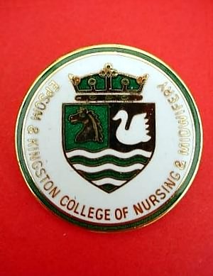 ..... Short Description ...... The Epsom & Kingston College of Nursing & Midwifery Hospital badge was awarded to nurses on completion of training. It is (shape) in shape and made from (materials), with the hospital name around the circumference. The badge weighs (weight) grams and has a (rear pin/button hole) fixing. Picture: The central design is of (description). Badges (were/were not) named and dated with the name of the recipient on the reverse. ..... |