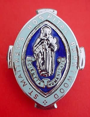 ..... Short Description ...... The St Matthew's Hospital Burntwood Hospital badge was awarded to nurses on completion of training. It is (shape) in shape and made from (materials), with the hospital name around the circumference. The badge weighs (weight) grams and has a (rear pin/button hole) fixing. Picture: The central design is of (description). Badges (were/were not) named and dated with the name of the recipient on the reverse. ..... |