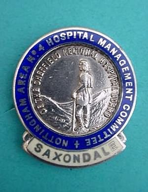 ..... Short Description ...... The Saxondale Hospital Nottingham Hospital badge was awarded to nurses on completion of training. It is (shape) in shape and made from (materials), with the hospital name around the circumference. The badge weighs (weight) grams and has a (rear pin/button hole) fixing. Picture: The central design is of (description). Badges (were/were not) named and dated with the name of the recipient on the reverse. ..... |
