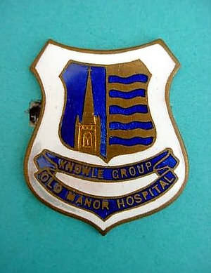 ..... Short Description ...... The Knowle Group Old Manor Hospital, Fareham, Hospital badge was awarded to nurses on completion of training. It is (shape) in shape and made from (materials), with the hospital name around the circumference. The badge weighs (weight) grams and has a (rear pin/button hole) fixing. Picture: The central design is of (description). Badges (were/were not) named and dated with the name of the recipient on the reverse. ..... |