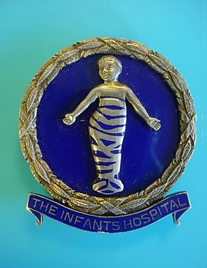 ..... Short Description ...... The Infants Hospital Westminster, Hospital badge was awarded to nurses on completion of training. It is (shape) in shape and made from (materials), with the hospital name around the circumference. The badge weighs (weight) grams and has a (rear pin/button hole) fixing. Picture: The central design is of (description). Badges (were/were not) named and dated with the name of the recipient on the reverse. ..... |