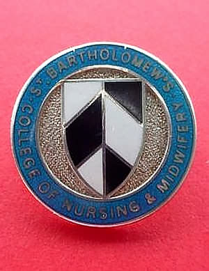 ..... Short Description ...... The St Bartholemew's College of Nursing & Midwifery, London, Hospital badge was awarded to nurses on completion of training. It is (shape) in shape and made from (materials), with the hospital name around the circumference. The badge weighs (weight) grams and has a (rear pin/button hole) fixing. Picture: The central design is of (description). Badges (were/were not) named and dated with the name of the recipient on the reverse. ..... |