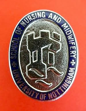 ..... Short Description ...... The University of Nottingham School of Nursing and Midwifery, Nottingham, Hospital badge was awarded to nurses on completion of training. It is (shape) in shape and made from (materials), with the hospital name around the circumference. The badge weighs (weight) grams and has a (rear pin/button hole) fixing. Picture: The central design is of (description). Badges (were/were not) named and dated with the name of the recipient on the reverse. ..... |