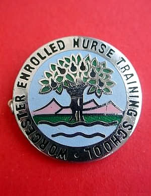 ..... Short Description ...... The Worcester Enrolled Nurse Training School Hospital badge was awarded to nurses on completion of training. It is (shape) in shape and made from (materials), with the hospital name around the circumference. The badge weighs (weight) grams and has a (rear pin/button hole) fixing. Picture: The central design is of (description). Badges (were/were not) named and dated with the name of the recipient on the reverse. ..... |