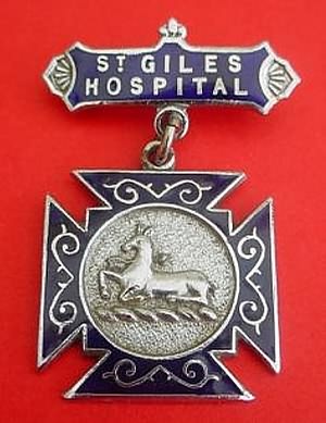..... Short Description ...... The St Giles Hospital London Hospital badge was awarded to nurses on completion of training. It is (shape) in shape and made from (materials), with the hospital name around the circumference. The badge weighs (weight) grams and has a (rear pin/button hole) fixing. Picture: The central design is of (description). Badges (were/were not) named and dated with the name of the recipient on the reverse. ..... |