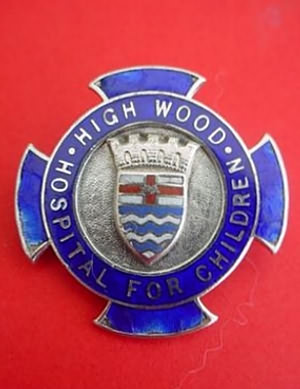 ..... Short Description ...... The High Wood Hospital for Children, London, Hospital badge was awarded to nurses on completion of training. It is (shape) in shape and made from (materials), with the hospital name around the circumference. The badge weighs (weight) grams and has a (rear pin/button hole) fixing. Picture: The central design is of (description). Badges (were/were not) named and dated with the name of the recipient on the reverse. ..... |
