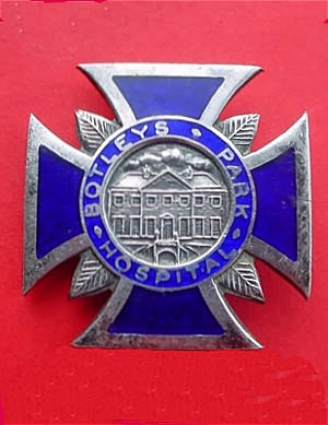 ..... Short Description ...... The Botleys Park Hospital Chertsey Hospital badge was awarded to nurses on completion of training. It is (shape) in shape and made from (materials), with the hospital name around the circumference. The badge weighs (weight) grams and has a (rear pin/button hole) fixing. Picture: The central design is of (description). Badges (were/were not) named and dated with the name of the recipient on the reverse. ..... |
