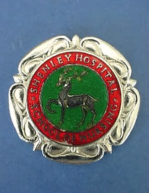 ..... Short Description ...... The Shenley Hospital School of Nursing, Radlett, Hospital badge was awarded to nurses on completion of training. It is (shape) in shape and made from (materials), with the hospital name around the circumference. The badge weighs (weight) grams and has a (rear pin/button hole) fixing. Picture: The central design is of (description). Badges (were/were not) named and dated with the name of the recipient on the reverse. ..... |
