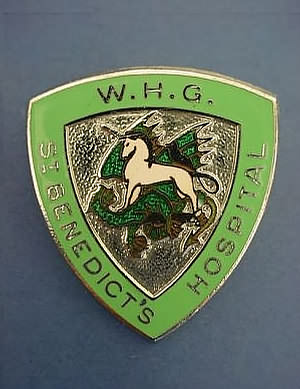 ..... Short Description ...... The Wandsworth Hospital Group St Benedict's Hospital Tooting, Hospital badge was awarded to nurses on completion of training. It is (shape) in shape and made from (materials), with the hospital name around the circumference. The badge weighs (weight) grams and has a (rear pin/button hole) fixing. Picture: The central design is of (description). Badges (were/were not) named and dated with the name of the recipient on the reverse. ..... |