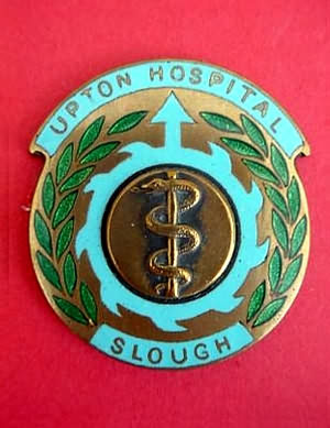 ..... Short Description ...... The Upton Hospital Slough Hospital badge was awarded to nurses on completion of training. It is (shape) in shape and made from (materials), with the hospital name around the circumference. The badge weighs (weight) grams and has a (rear pin/button hole) fixing. Picture: The central design is of (description). Badges (were/were not) named and dated with the name of the recipient on the reverse. ..... |