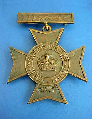 ..... Short Description ...... The King Edward VII Memorial Eliot Hospital Hayward's Heath Hospital badge was awarded to nurses on completion of training. It is (shape) in shape and made from (materials), with the hospital name around the circumference. The badge weighs (weight) grams and has a (rear pin/button hole) fixing. Picture: The central design is of (description). Badges (were/were not) named and dated with the name of the recipient on the reverse. ..... |