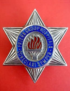..... Short Description ...... The Friern Group Hospital Colney Hatch Hospital badge was awarded to nurses on completion of training. It is (shape) in shape and made from (materials), with the hospital name around the circumference. The badge weighs (weight) grams and has a (rear pin/button hole) fixing. Picture: The central design is of (description). Badges (were/were not) named and dated with the name of the recipient on the reverse. ..... |