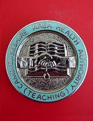 ..... Short Description ...... The Cambridgeshire Area Health Authority (Teaching) Cambridge Hospital badge was awarded to nurses on completion of training. It is (shape) in shape and made from (materials), with the hospital name around the circumference. The badge weighs (weight) grams and has a (rear pin/button hole) fixing. Picture: The central design is of (description). Badges (were/were not) named and dated with the name of the recipient on the reverse. ..... |