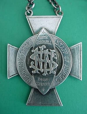 ..... Short Description ...... The Norfolk & Norwich (Silver) Staff of Nurses, Norwich, Hospital badge was awarded to nurses on completion of training. It is (shape) in shape and made from (materials), with the hospital name around the circumference. The badge weighs (weight) grams and has a (rear pin/button hole) fixing. Picture: The central design is of (description). Badges (were/were not) named and dated with the name of the recipient on the reverse. ..... |