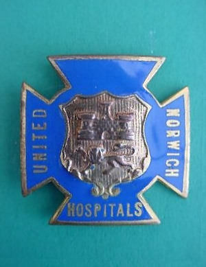 ..... Short Description ...... The United Norwich Hospitals Norfolk Hospital badge was awarded to nurses on completion of training. It is (shape) in shape and made from (materials), with the hospital name around the circumference. The badge weighs (weight) grams and has a (rear pin/button hole) fixing. Picture: The central design is of (description). Badges (were/were not) named and dated with the name of the recipient on the reverse. ..... |