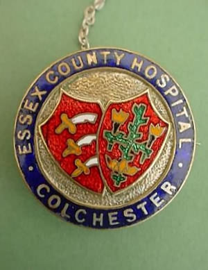 ..... Short Description ...... The Essex County Hospital Colchester Hospital badge was awarded to nurses on completion of training. It is (shape) in shape and made from (materials), with the hospital name around the circumference. The badge weighs (weight) grams and has a (rear pin/button hole) fixing. Picture: The central design is of (description). Badges (were/were not) named and dated with the name of the recipient on the reverse. ..... |