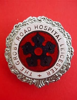 ..... Short Description ...... The Groby Road Hospital Leicester Hospital badge was awarded to nurses on completion of training. It is (shape) in shape and made from (materials), with the hospital name around the circumference. The badge weighs (weight) grams and has a (rear pin/button hole) fixing. Picture: The central design is of (description). Badges (were/were not) named and dated with the name of the recipient on the reverse. ..... |