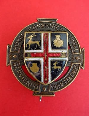 ..... Short Description ...... The Royal Berkshire Hospital Reading Hospital badge was awarded to nurses on completion of training. It is (shape) in shape and made from (materials), with the hospital name around the circumference. The badge weighs (weight) grams and has a (rear pin/button hole) fixing. Picture: The central design is of (description). Badges (were/were not) named and dated with the name of the recipient on the reverse. ..... |
