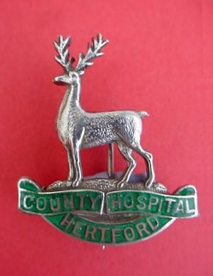 ..... Short Description ...... The County Hospital Hertford Hospital badge was awarded to nurses on completion of training. It is (shape) in shape and made from (materials), with the hospital name around the circumference. The badge weighs (weight) grams and has a (rear pin/button hole) fixing. Picture: The central design is of (description). Badges (were/were not) named and dated with the name of the recipient on the reverse. ..... |