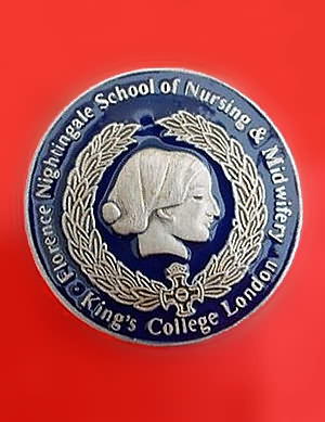 ..... Short Description ...... The Florence Nightingale School of Nursing & Midwifery, Kings College London Hospital badge was awarded to nurses on completion of training. It is (shape) in shape and made from (materials), with the hospital name around the circumference. The badge weighs (weight) grams and has a (rear pin/button hole) fixing. Picture: The central design is of (description). Badges (were/were not) named and dated with the name of the recipient on the reverse. ..... |