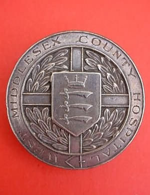..... Short Description ...... The Middlesex County Hospital, Fitzrovia, London Hospital badge was awarded to nurses on completion of training. It is (shape) in shape and made from (materials), with the hospital name around the circumference. The badge weighs (weight) grams and has a (rear pin/button hole) fixing. Picture: The central design is of (description). Badges (were/were not) named and dated with the name of the recipient on the reverse. ..... |