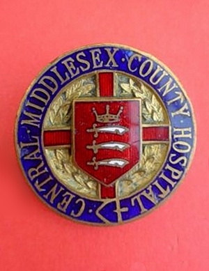 ..... Short Description ...... The Central Middlesex County Hospital, Park Royal, Hospital badge was awarded to nurses on completion of training. It is (shape) in shape and made from (materials), with the hospital name around the circumference. The badge weighs (weight) grams and has a (rear pin/button hole) fixing. Picture: The central design is of (description). Badges (were/were not) named and dated with the name of the recipient on the reverse. ..... |