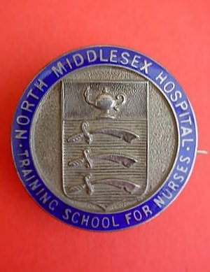 ..... Short Description ...... The North Middlesex Hospital Training School for Nurses, Edmonton, Hospital badge was awarded to nurses on completion of training. It is (shape) in shape and made from (materials), with the hospital name around the circumference. The badge weighs (weight) grams and has a (rear pin/button hole) fixing. Picture: The central design is of (description). Badges (were/were not) named and dated with the name of the recipient on the reverse. ..... |
