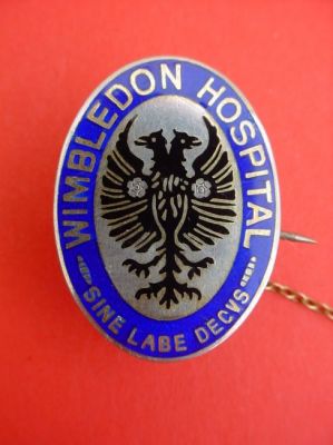 ..... Short Description ...... The Wimbledon Hospital Copse Hill, Hospital badge was awarded to nurses on completion of training. It is (shape) in shape and made from (materials), with the hospital name around the circumference. The badge weighs (weight) grams and has a (rear pin/button hole) fixing. Picture: The central design is of (description). Badges (were/were not) named and dated with the name of the recipient on the reverse. ..... |
