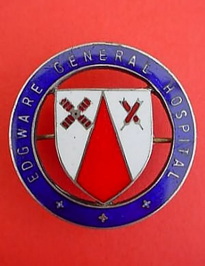 ..... Short Description ...... The Edgeware General Hospital Hospital badge was awarded to nurses on completion of training. It is (shape) in shape and made from (materials), with the hospital name around the circumference. The badge weighs (weight) grams and has a (rear pin/button hole) fixing. Picture: The central design is of (description). Badges (were/were not) named and dated with the name of the recipient on the reverse. ..... |