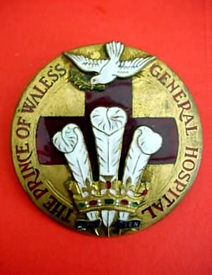 ..... Short Description ...... The Prince of Wales's General Hospital, Tottenham, Hospital badge was awarded to nurses on completion of training. It is (shape) in shape and made from (materials), with the hospital name around the circumference. The badge weighs (weight) grams and has a (rear pin/button hole) fixing. Picture: The central design is of (description). Badges (were/were not) named and dated with the name of the recipient on the reverse. ..... |