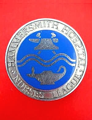 ..... Short Description ...... The Hammersmith Hospital Nurses League Acton, Hospital badge was awarded to nurses on completion of training. It is (shape) in shape and made from (materials), with the hospital name around the circumference. The badge weighs (weight) grams and has a (rear pin/button hole) fixing. Picture: The central design is of (description). Badges (were/were not) named and dated with the name of the recipient on the reverse. ..... |
