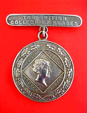 ..... Short Description ...... The British College of Nurses, London, Hospital badge was awarded to nurses on completion of training. It is (shape) in shape and made from (materials), with the hospital name around the circumference. The badge weighs (weight) grams and has a (rear pin/button hole) fixing. Picture: The central design is of (description). Badges (were/were not) named and dated with the name of the recipient on the reverse. ..... |