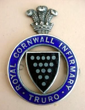 ..... Short Description ...... The Royal Cornwall Infirmary Truro Hospital badge was awarded to nurses on completion of training. It is (shape) in shape and made from (materials), with the hospital name around the circumference. The badge weighs (weight) grams and has a (rear pin/button hole) fixing. Picture: The central design is of (description). Badges (were/were not) named and dated with the name of the recipient on the reverse. ..... |