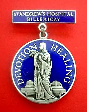..... Short Description ...... The St Andrew's Hospital Billericay Hospital badge was awarded to nurses on completion of training. It is (shape) in shape and made from (materials), with the hospital name around the circumference. The badge weighs (weight) grams and has a (rear pin/button hole) fixing. Picture: The central design is of (description). Badges (were/were not) named and dated with the name of the recipient on the reverse. ..... |