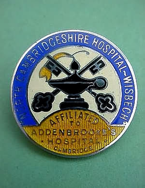 ..... Short Description ...... The North Cambridgeshire Hospital Wisbech Hospital badge was awarded to nurses on completion of training. It is (shape) in shape and made from (materials), with the hospital name around the circumference. The badge weighs (weight) grams and has a (rear pin/button hole) fixing. Picture: The central design is of (description). Badges (were/were not) named and dated with the name of the recipient on the reverse. ..... |