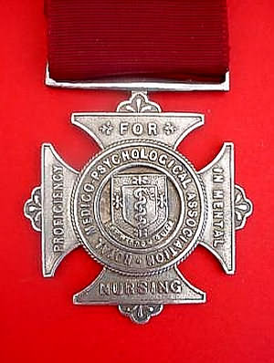 ..... Short Description ...... The Royal Medico-Psychological Association Proficiency In Mental Nursing. Hospital badge was awarded to nurses on completion of training. It is (shape) in shape and made from (materials), with the hospital name around the circumference. The badge weighs (weight) grams and has a (rear pin/button hole) fixing. Picture: The central design is of (description). Badges (were/were not) named and dated with the name of the recipient on the reverse. ..... |